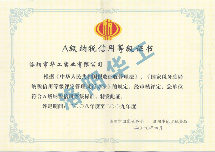 A級納稅信用等級證書