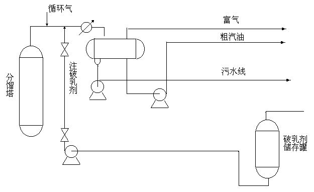 2、破乳劑直接用隔膜泵或往復泵打入塔頂油氣線。